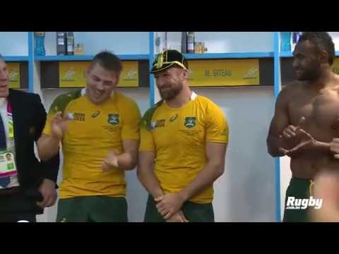 Moment fort en émotion pour Matt Giteau qui fêtait sa 100e sélection avec son pays ! Matt a reçu une « cap » honorifique pour symboliser ces 100 matchs dans le vestiaire après le match